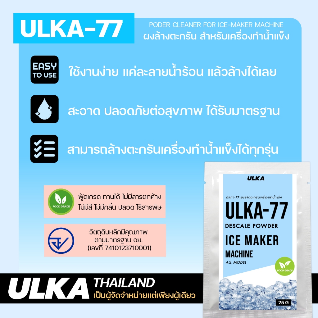 น้ำยาล้างตะกรัน ฟู๊ดเกรด ULKA 77 ผงล้างตะกรัน น้ำยาล้างคราบ หินปูน เครื่องทำน้ำแข็ง ปลอดภัยต่อสุขภาพ (ขอบิล ทักแชท)