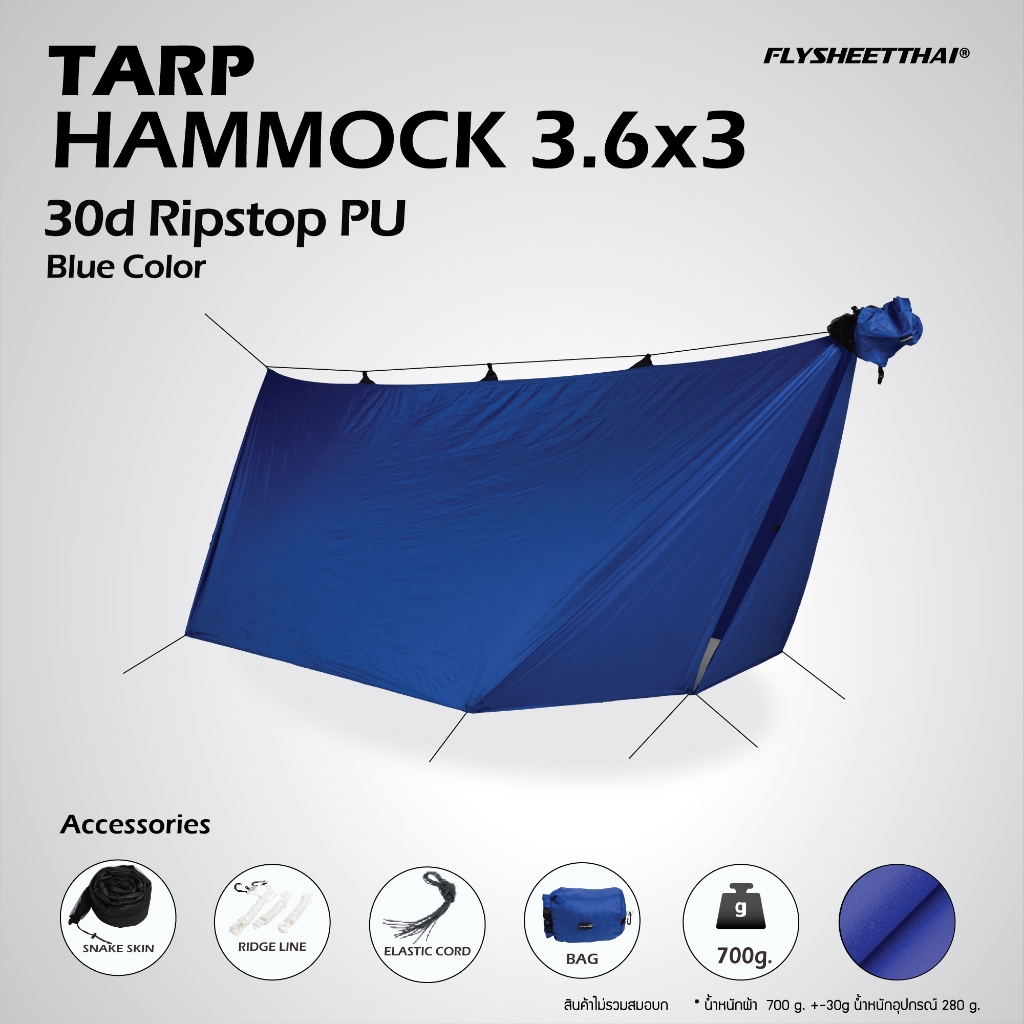 ฟลายชีท ทาร์ปเปล Tarp Hammock 30d Ripstop pu 3.6x3 ฟลายชีทไทย Flysheet thai