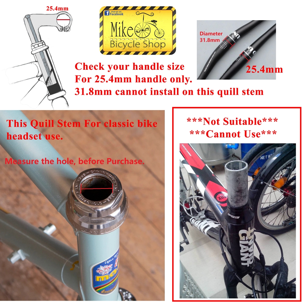 Quill Stem Goose คอโลหะผสม Handlebar 25.4 มม.คลาสสิกจักรยานเสือหมอบ Bolt Clamp จักรยาน Gooseneck post