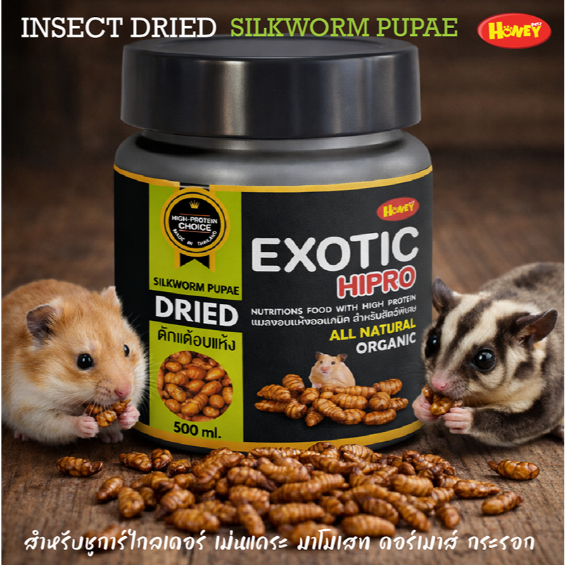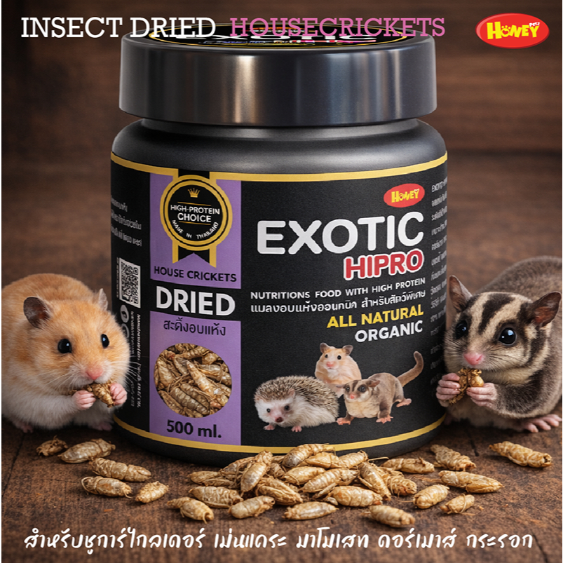 [HoneyPetz]แมลงออแกนิคอบแห้ง Exotic Hipro 500ml. หนอนไหมอบแห้ง ดัดแด้อบแห้ง จิ้งหรีดอบแห้ง สะดิ้งอบแห้ง หอม กรอบ ไม่ป่น