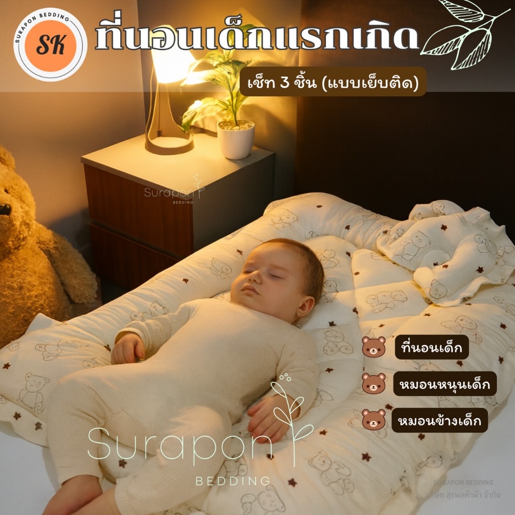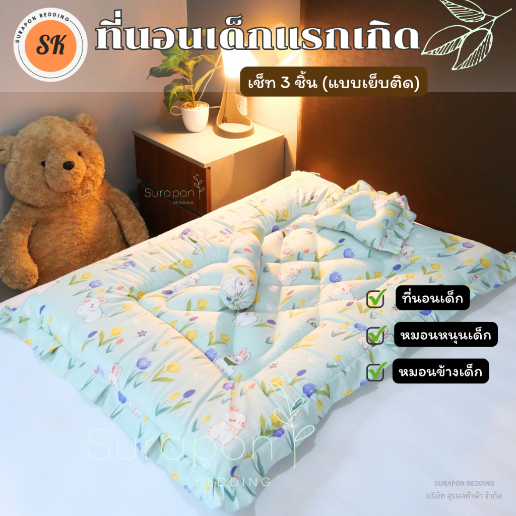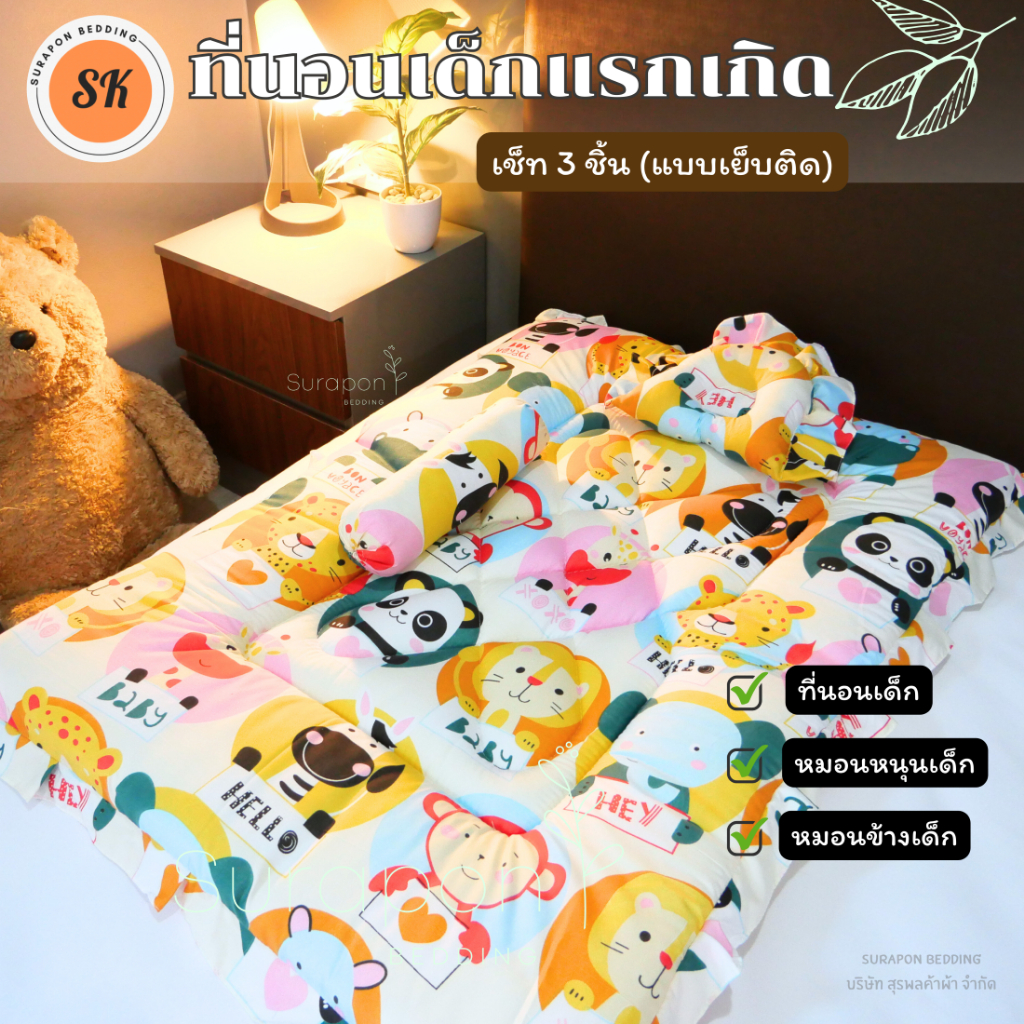Surapon : ที่นอนเด็กอ่อน ที่นอนเด็กแรกเกิด เช็ท 3 ชิ้น (แบบเย็บติด)