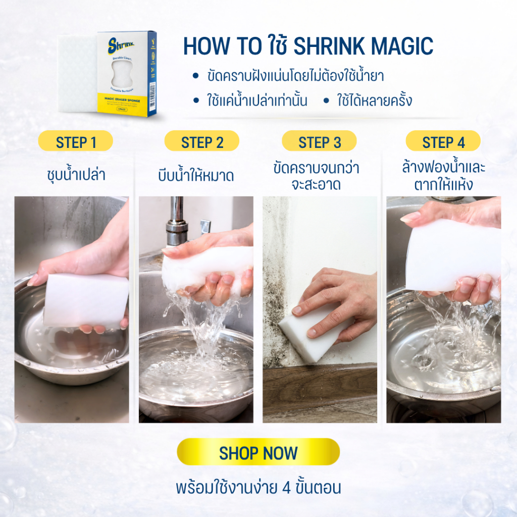 Shrink Magic Sponge (ฟองน้ำนาโนขจัดคราบสกปรกฝังแน่น)