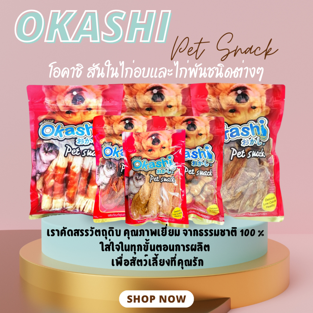 OKASHI SNACK DOG AND CAT ขนมขบเคี้ยวสำหรับสุนัขและแมว ( สินค้าแพ็คคู่ ซองแดงใหญ่ )