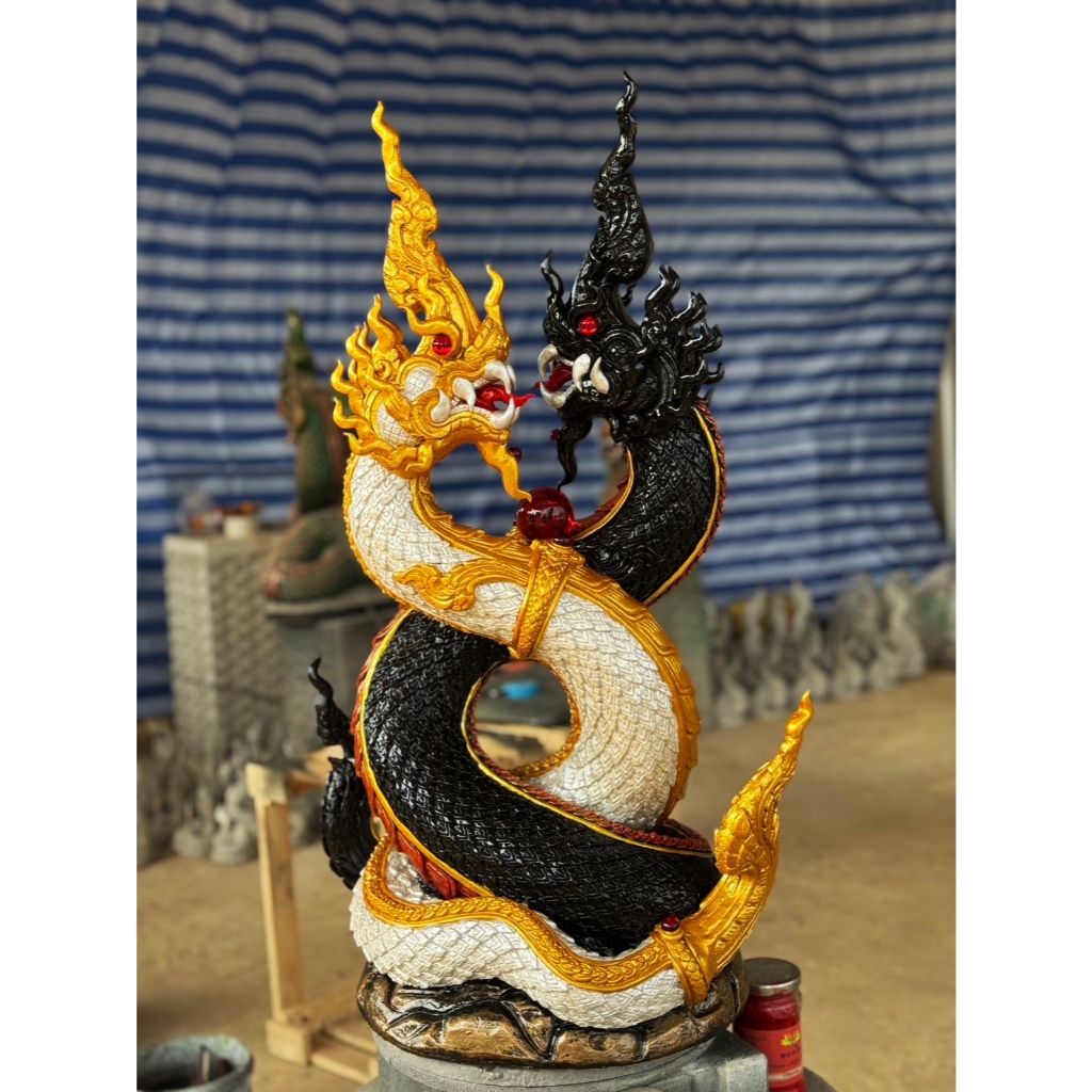รูปปั้นพญานาคพ่นน้ำ พญานาคเกี้ยวทรัพย์ พญานาคเกี้ยวคู่ นาคเกี้ยวทรัพย์ BC-180 (สูง 78 ซม.)