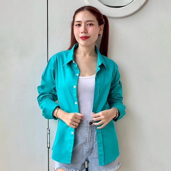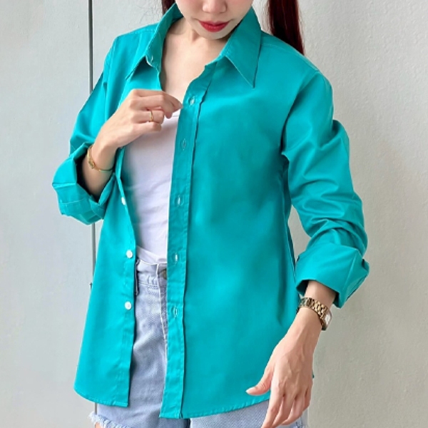 takayay brand เสื้อเชิ๊ต สีเขียวน้ำทะเล 36-54 นิ้ว เสื้อเชิ้ตสีสด ผ้าคอตตอนทวิล เสื้อเชิ้ตสีเขียว