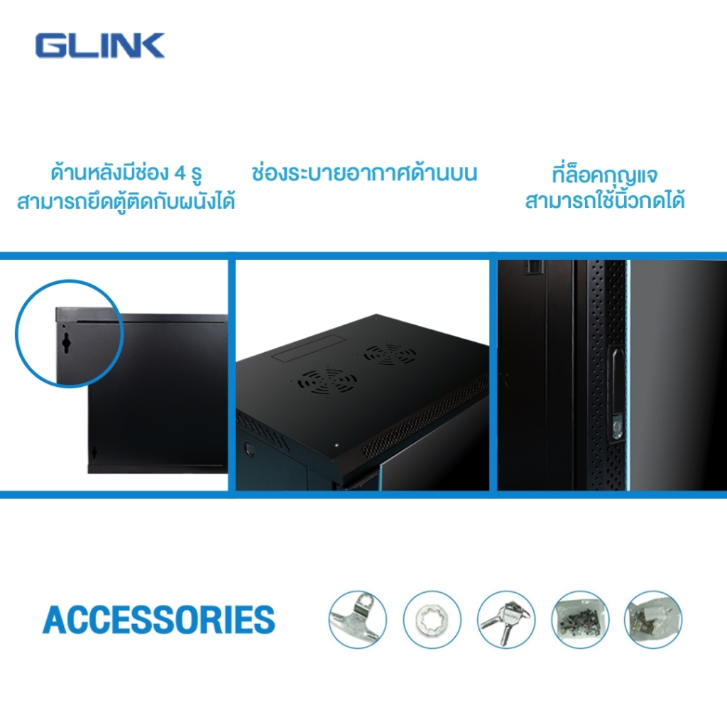 Glink GC12U Network Cabinet ตู้ Rack GC12U 45CM ขนาด60x45x63.5 CM (ลึก 45cm) สำหรับกล้องวงจรปิด ฮับสวิตซ์