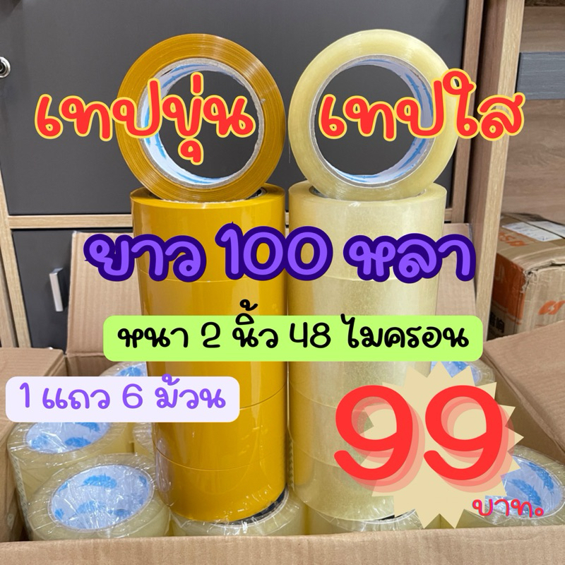 เทปใส เทปขุ่น Storm 1 แถว (6ม้วน) ยาว 100 หลา 48 ไมครอน หนา 2 นิ้ว