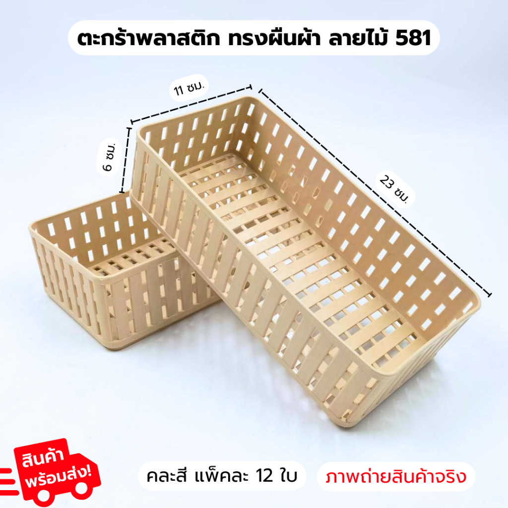 ตะกร้าสี่เหลี่ยมผืนผ้า ลายไม้ รหัส581 (1แพ็ค12ชิ้น) ตะกร้าลายหวาย ตะกร้าใส่ของ