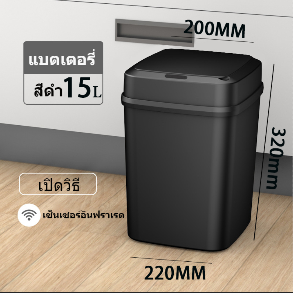 ถังขยะอัจฉริยะ 13L/15Lถังขยะอัตโนมัติ ฝาเปิด-ปิด ถังขยะอัจฉริยะสำหรับใช้ภายในบ้าน ถังขยะอัตโนมัติ
