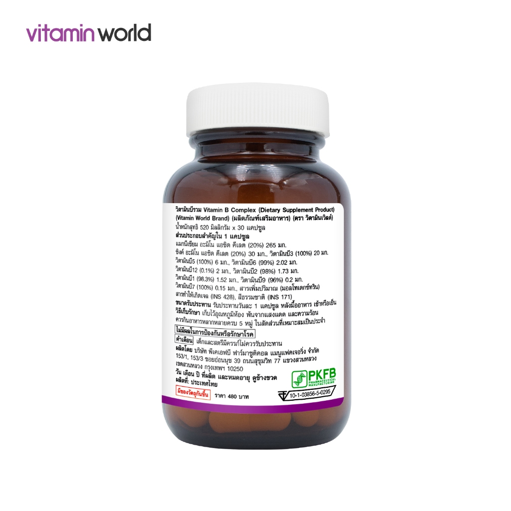 [แพ็ค 3 ขวด] วิตามินบีรวม Vitamin B Complex วิตามินบีคอมเพล็กซ์ วิตามินเวิลด์ Vitamin World วิตามินบี คอมเพล็กซ์