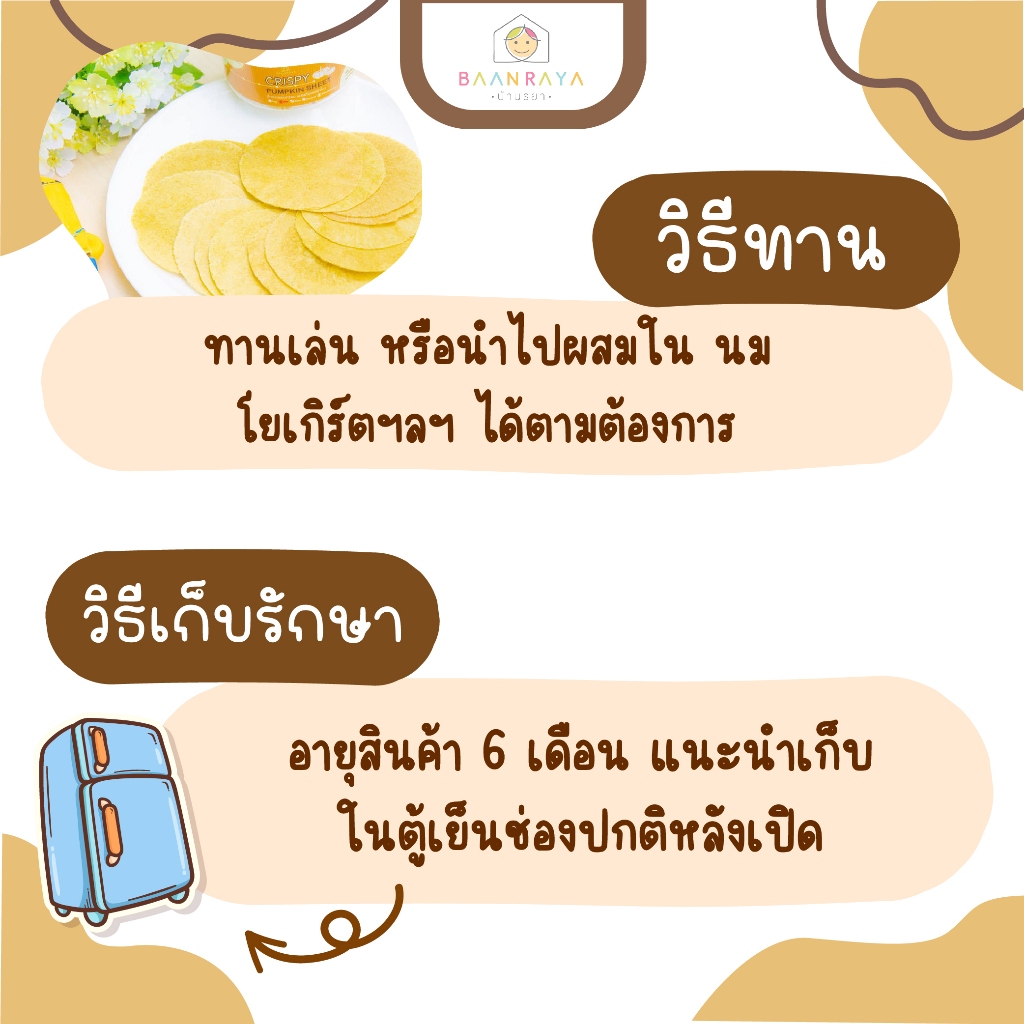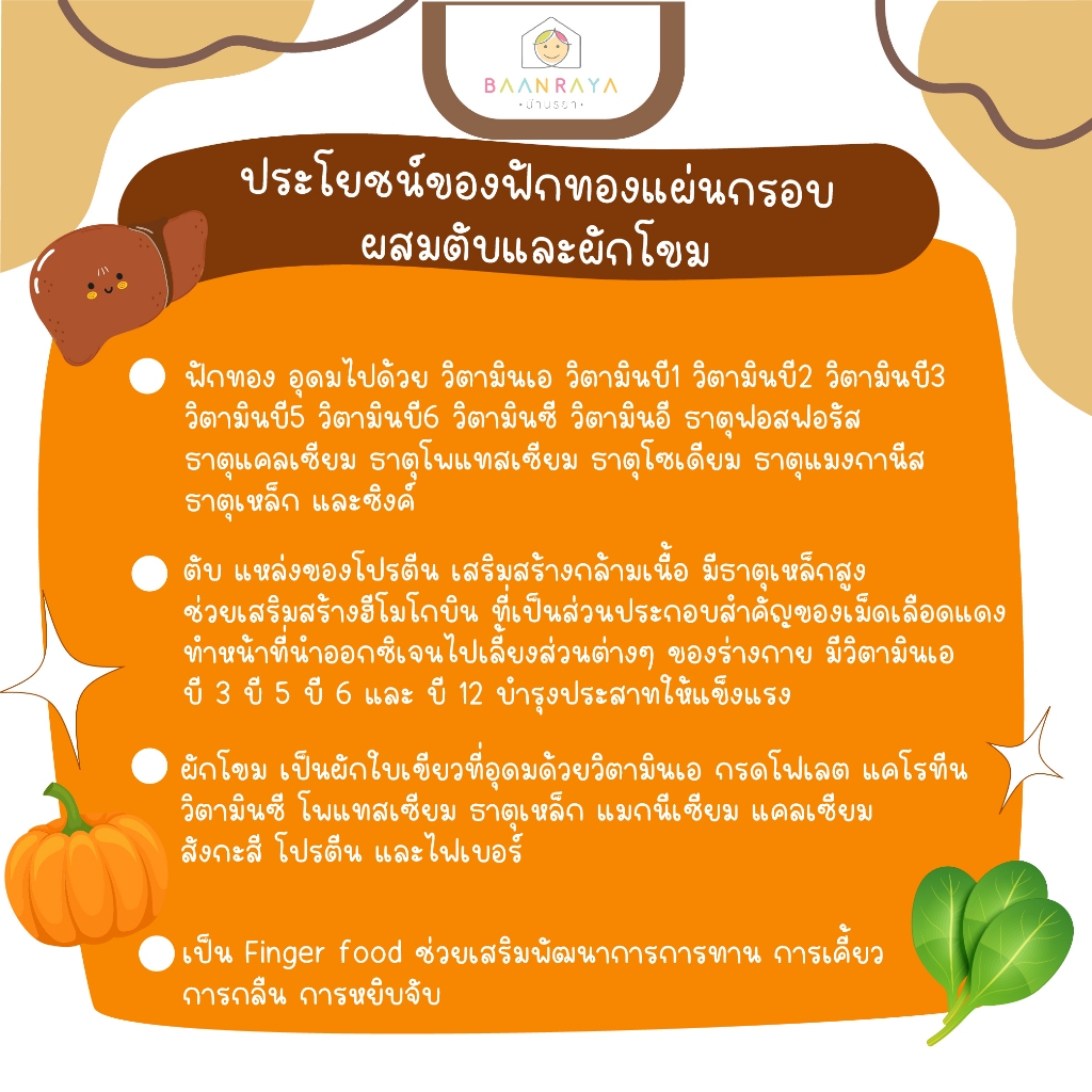 ขนมสำหรับเด็ก ฟักทองแผ่นกรอบ ผสมตับและผักโขม 20g อาหารเด็ก อาหารสำหรับเด็ก บ้านรยา (6m+) ขนมเด็ก ขนมของเด็ก
