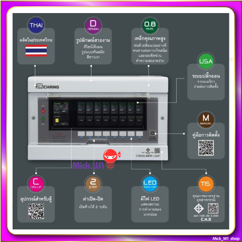 ช้าง Chang ตู้คอนซูเมอร์ รุ่นใหม่ APR กันดูด RCBO 4ช่อง,6ช่อง,8ช่อง,10ช่อง,12ช่อง,14ช่อง
