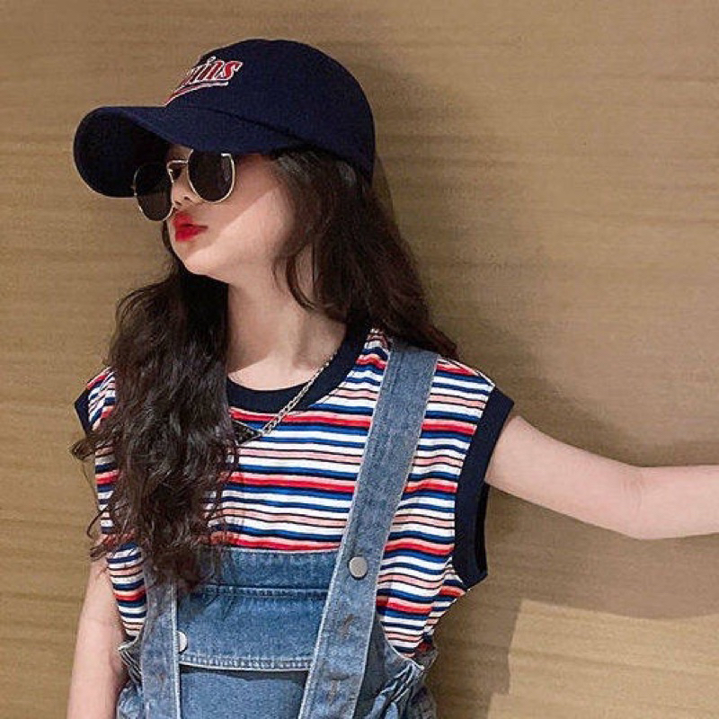(พร้อมส่ง) ชุดเซตเสื้อยืดลายทางแขนสั้น กางเกงเอี๊ยมเด็กผู้หญิงขาสั้น แฟชั่่นเกาหลี เท่ห์ๆ
