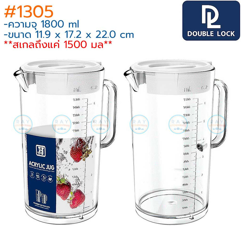 Double Lock เหยือกน้ำอะคริลิค 1400 มล(สเกล1000),1800 มล(สเกล1500) ฝาครอบปิด 1304 1305 BPA Free JCJ เหยือกพลาสติกใส