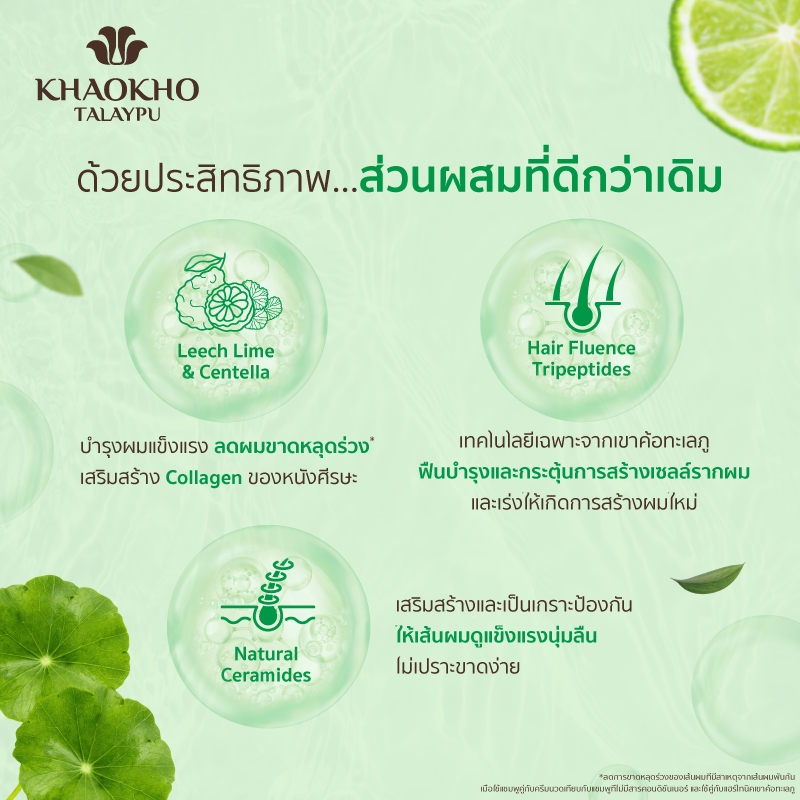 Khaokho Talaypu เขาค้อทะเลภู แชมพูแบบถุงรีฟิล สูตรมะกรูดและใบบัวบก ช่วยลดผมร่วง (400 มล.)