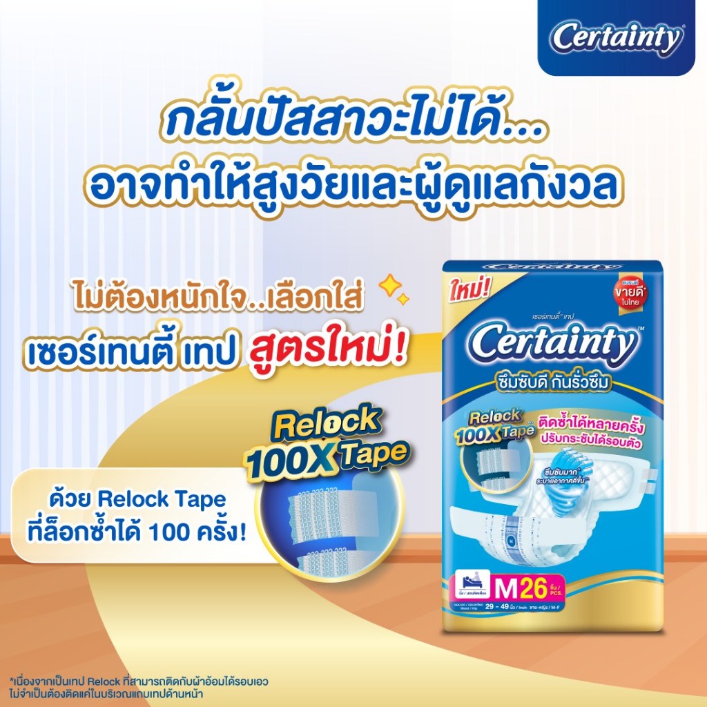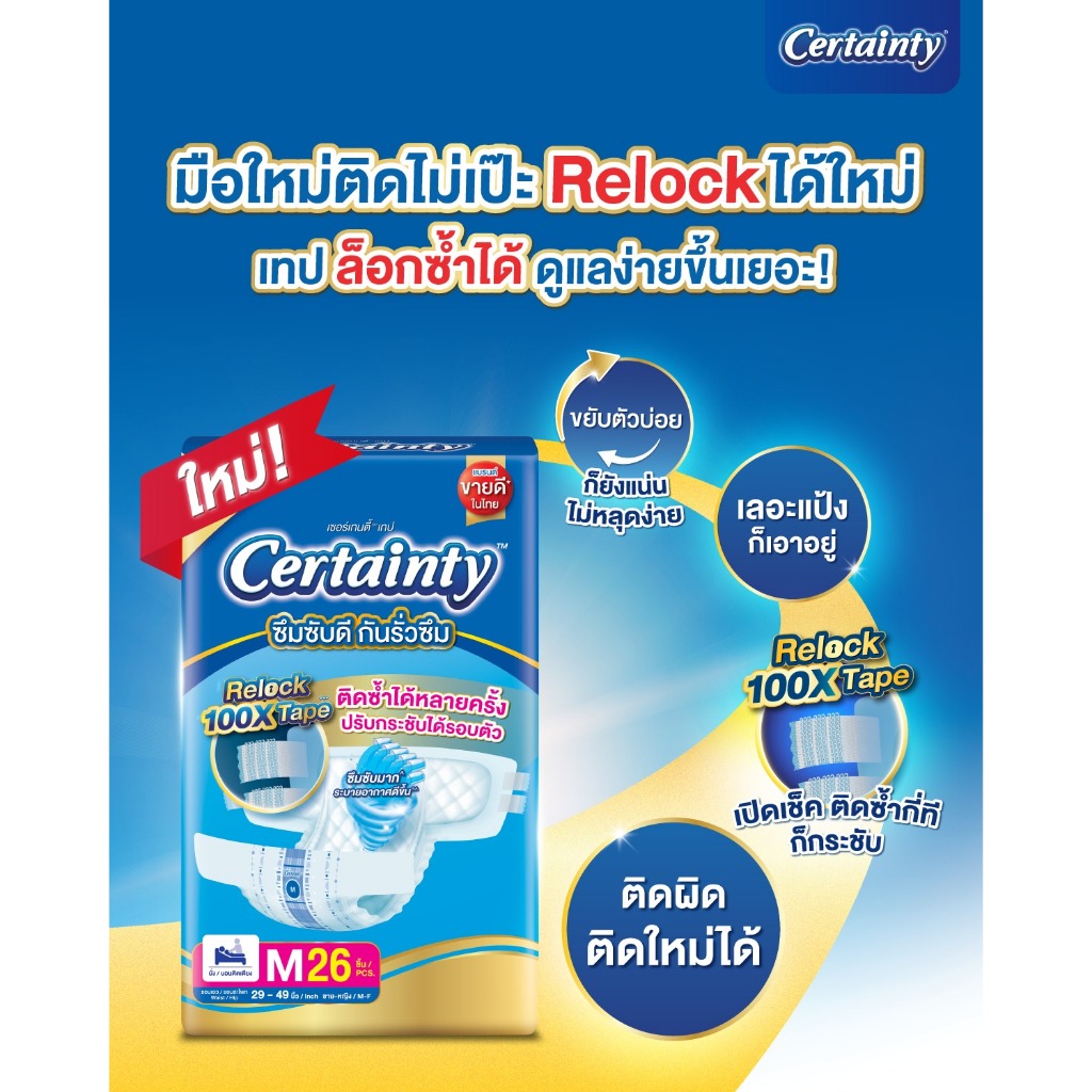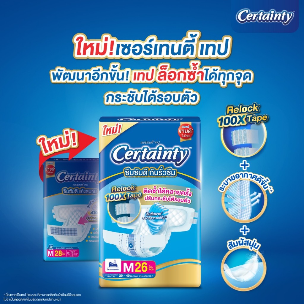 Certainty ผ้าอ้อมผู้ใหญ่แบบเทป ผ้าอ้อมผู้ใหญ่ เซอร์เทนตี้ แบบเทป ขนาดจัมโบ้ (ไซซ์ M/L/XL-XXL) แพมเพิสผู้ใหญ่ เซอเทนตี้