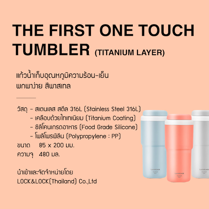 LocknLock แก้วน้ำเก็บอุณหภูมิ The First One Touch Tumbler (Titanium layer) ความจุ 480 ml. รุ่น LHC3291