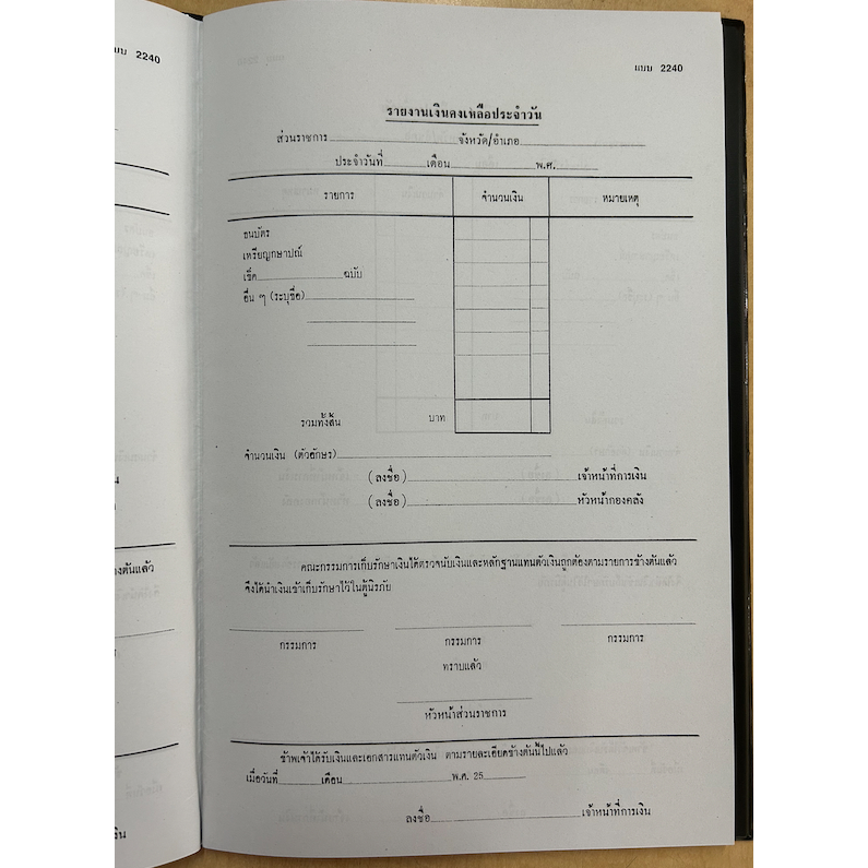 สมุดรายงานเงินคงเหลือประจำวัน (แบบ2240) ปกเคลือบ PVCใส
