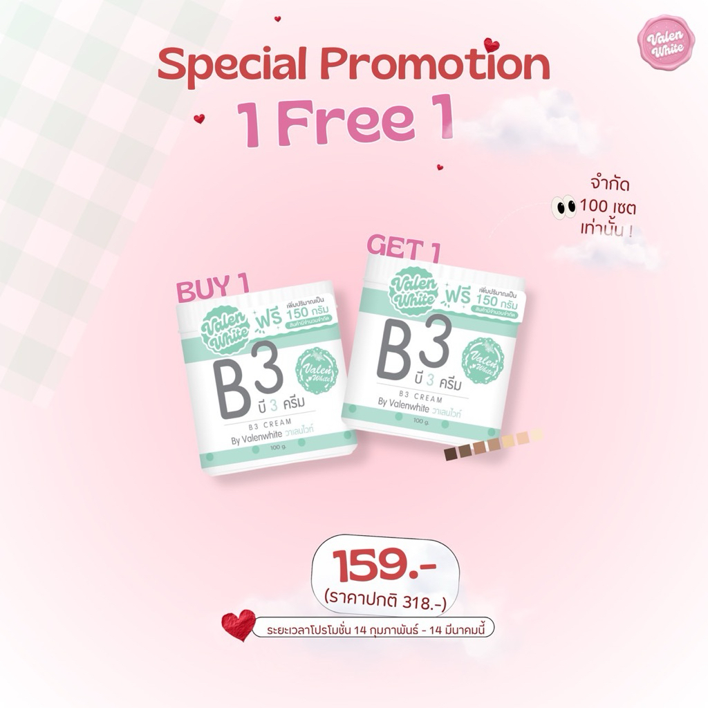 [1แถม1] โปรโมชั่นครีมแบรนวาเลนไวท์ประจำเดือนเมษา (จำนวนจำกัด)