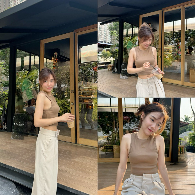 Tank Top by Howmy. แท้งท้อป เสื้อกล้ามครอป สีขาว สีดำ สีแดง สีน้ำตาลเบจ เสื้อครอป ซัมเมอร์