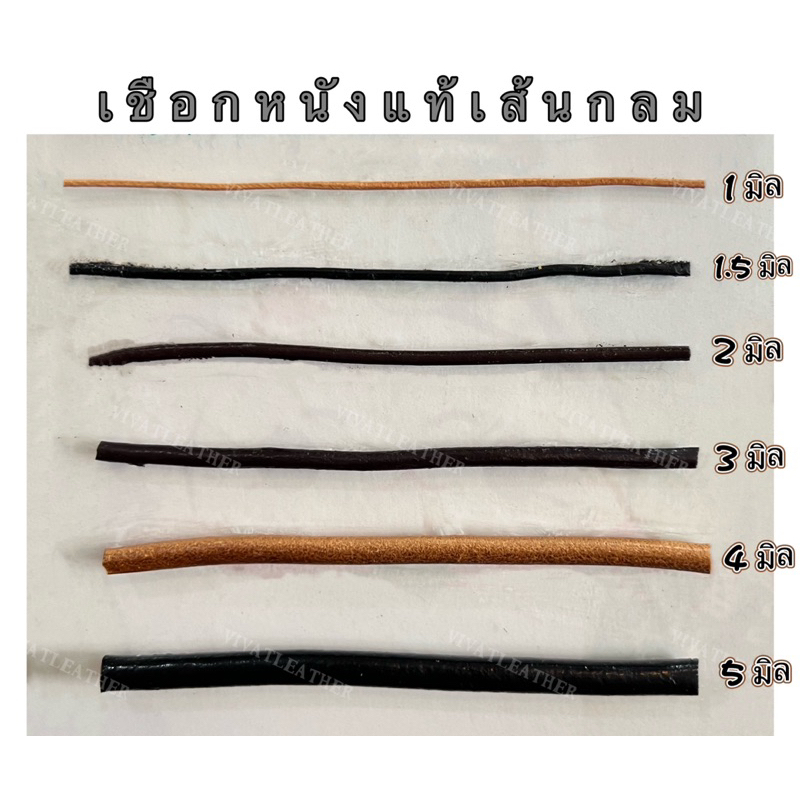 แบ่งขายขั้นต่ำ 1 หลา เชือกหนังเส้นกลม ขนาด 1 มม. 1.5 มม. 2 มม. 3 มม. 4 มม. 5 มม. 3 สี ธรรมชาติ น้ำตาล ดำ (Leather Cord)