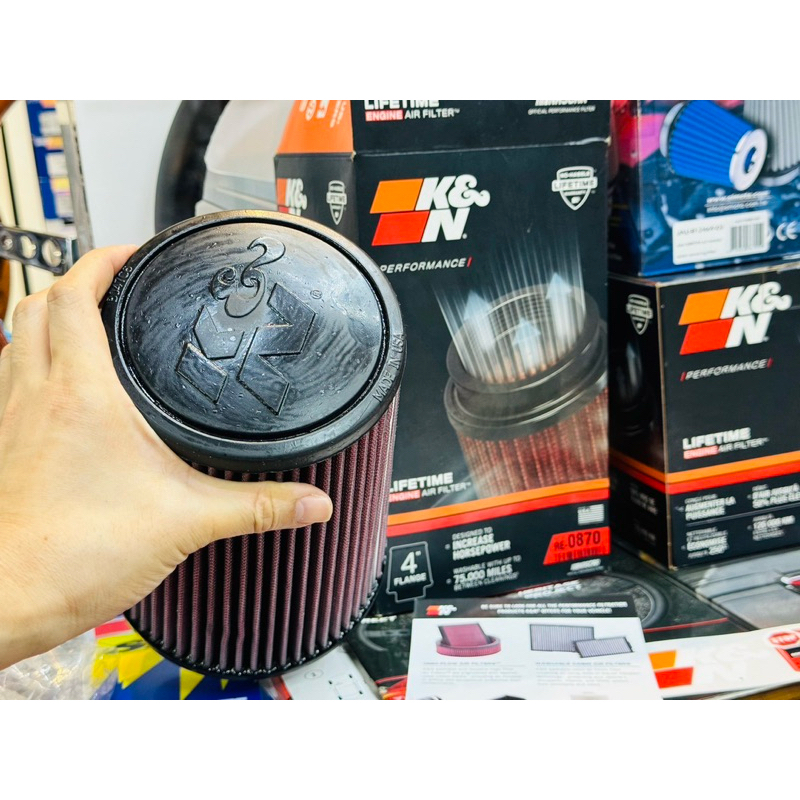 กรองเปลือย K&N ปาก4 นิ้ว หัวซิลิโคน ใส้กรองอากาศ Hight-Flow Air Filter แท้ ใหม่ มี อแดปเตอร์ ปรับลด ขนาด สูง 6 7 9 นิ้ว