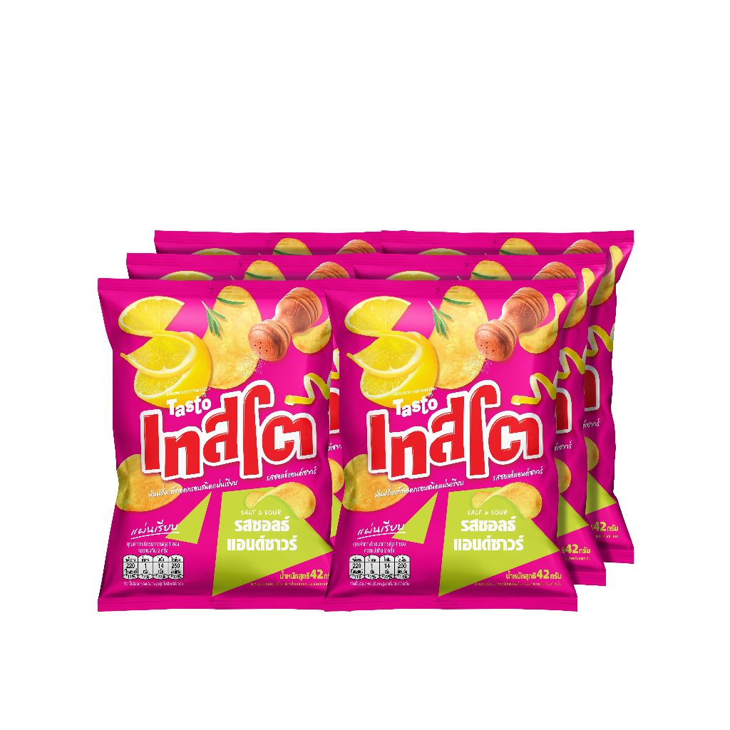 [แพ็ก 6]เทสโต ซอลธ์แอนด์ซาวร์ 42ก. เรียบ [Bundle 6]Tasto Salt & Sour 42g F/C มันฝรั่งแท้
