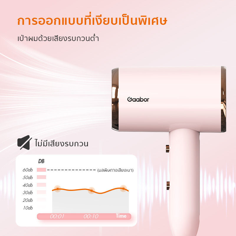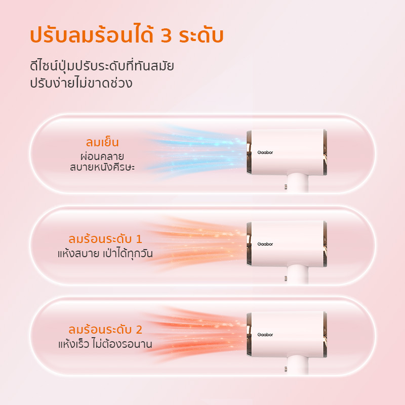 Gaabor ปรับแรงลม 3 ระดับ ไดร์เป่าผม 1000W แห้งไว เบา พกพาง่าย ร้อนเร็ว Hair dryer รุ่น
