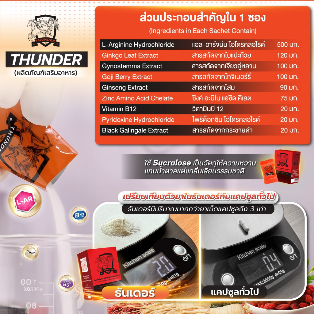 Thunder ธันเดอร์ ผงอมใต้ลิ้น อาหารเสริมธันเดอร์แบบผงอมใต้ลิ้นรสส้ม ของเเท้100%
