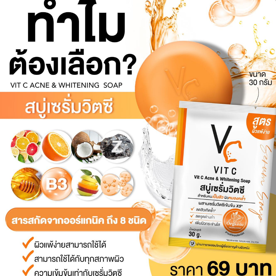 สบู่เซรั่มวิตซี รัชชา วิตซี แอคเน่ แอนด์ ไวท์เทนนิ่ง โซป Ratcha Vit C Acne & Whitening Soap 30 กรัม
