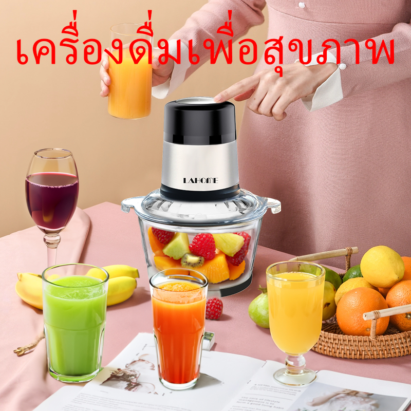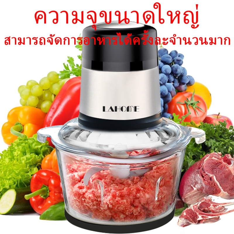 LAHOME เครื่องบดสับอาหาร 2L โถแก้ว ทนทาน บดเนื้อ บดผัก บดผลไม้ เครื่องบดอเนกประสงค์