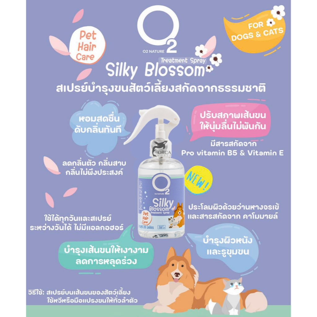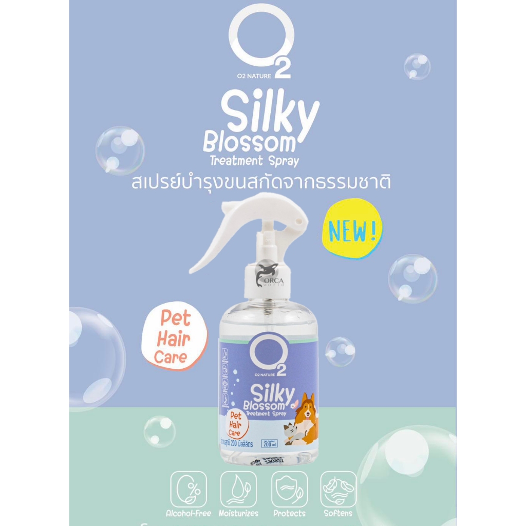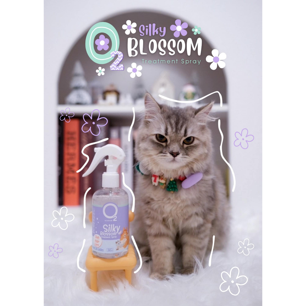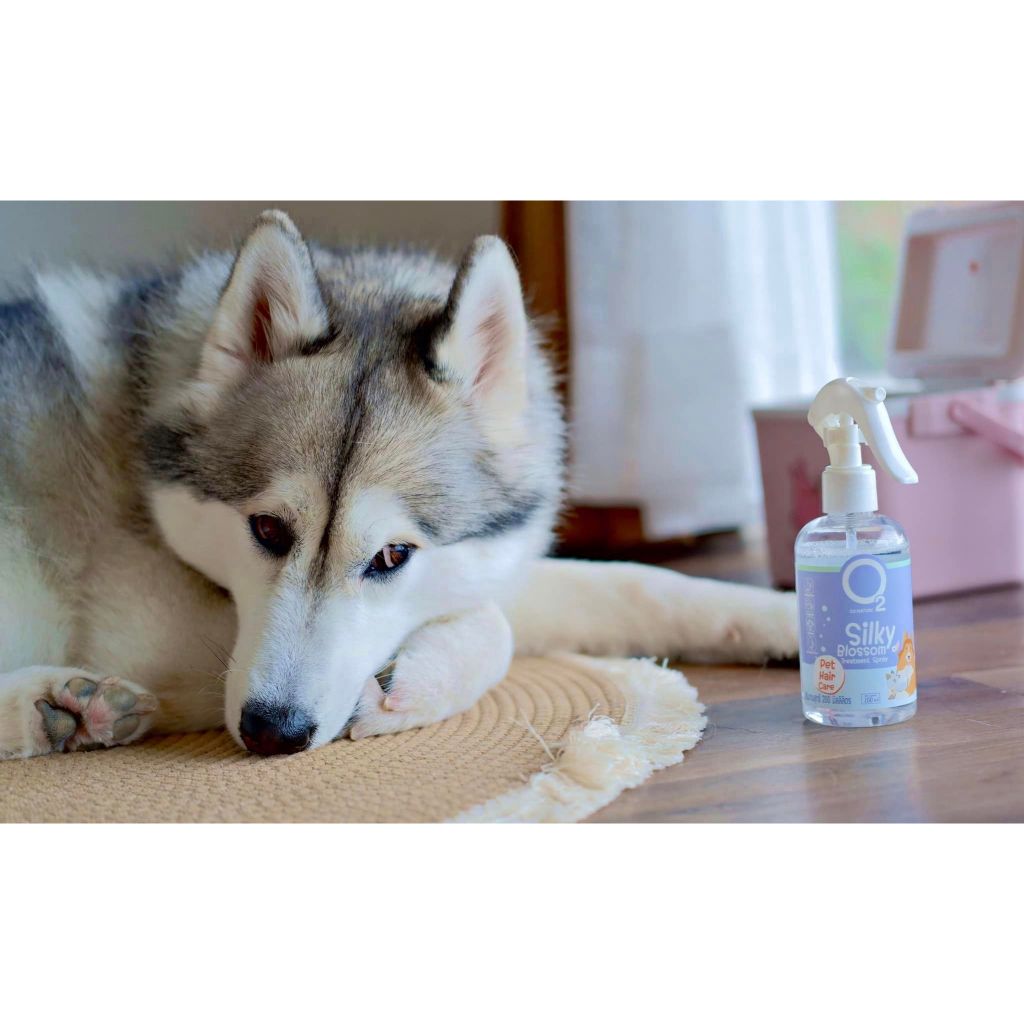 สเปรย์บำรุงขนสุนัข และ แมว O2 Silky Blossom โอทูซิลกี้บลอสซั่มสเปรย์ สำหรับหมา แมว ขนนุ่มสวย หวีง่าย