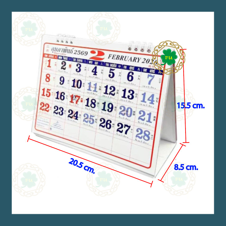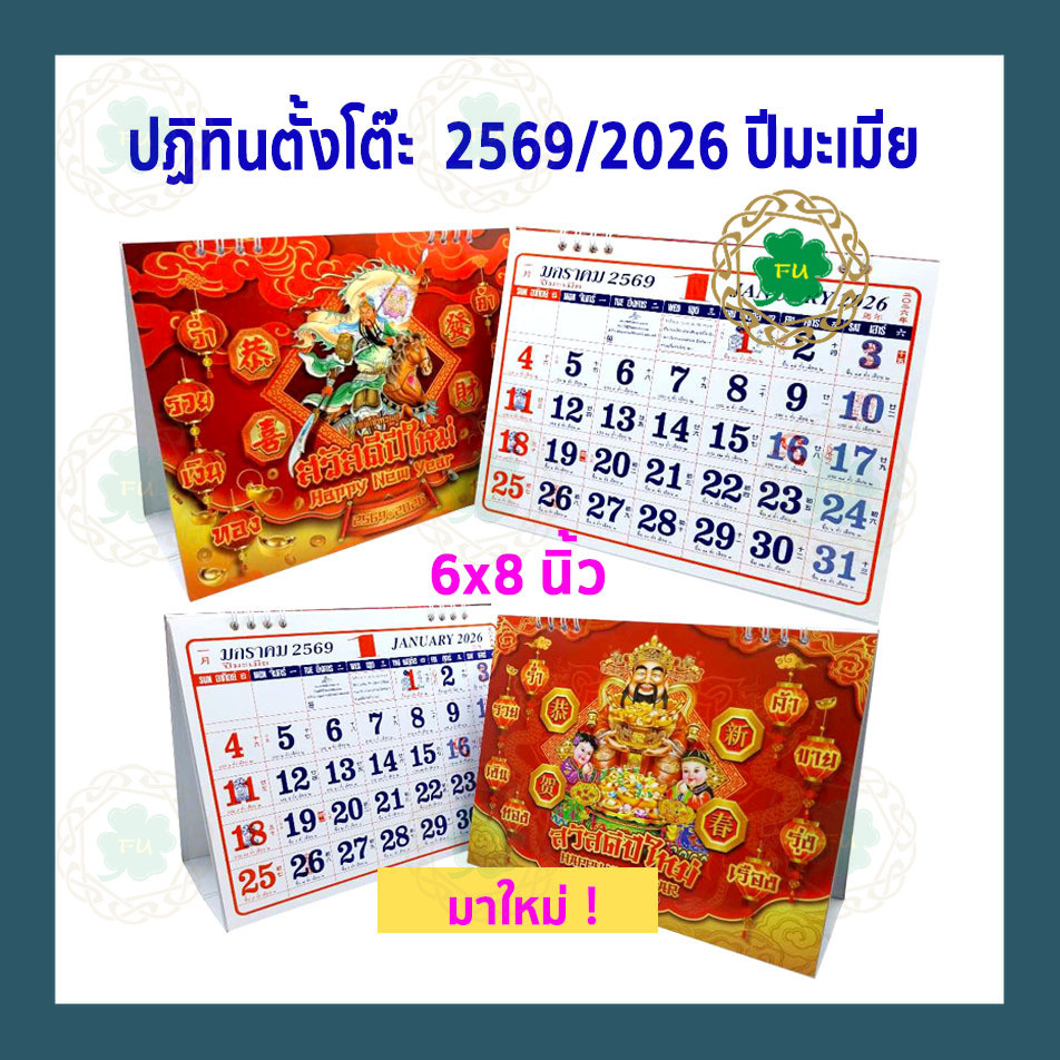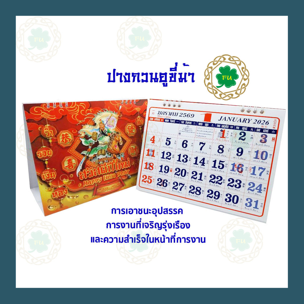 ปฏิทินจีนตั้งโต๊ะกวนอูขี่ม้า/ไฉ่ซิงเอี้ยะ ปี 2026/2569 ปีมะเมีย ขนาด 6x8 นิ้ว 8 แผ่น 16 หน้า ฐานสีขาว มีเลขเด็ด