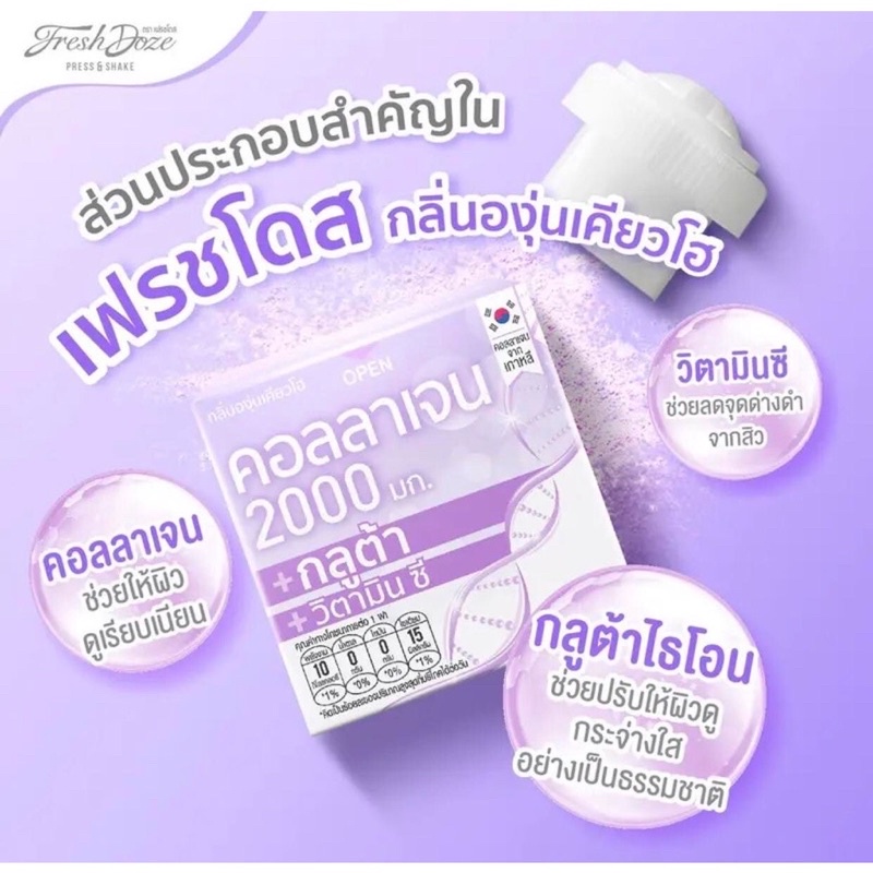 Fresh Doze เฟรชโดส เพรสแอนด์เชค คอลลาเจน 2000 กลูต้า กลิ่นองุ่นเคียวโฮ 3.5 กรัม แพ็ค12ชิ้น