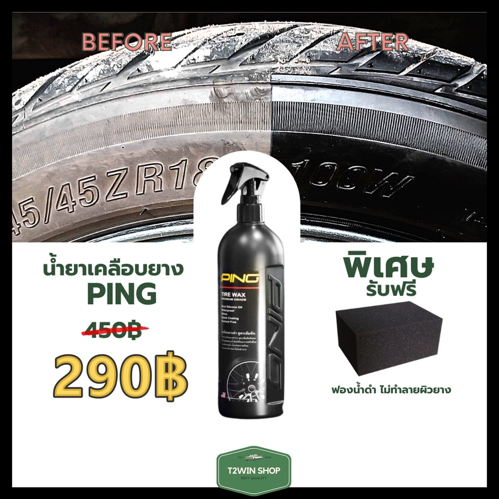 น้ำยาเคลือบยาง Ping ทายางดำ เคลือบยางดำ ดำนานถึง 2 สัปดาห์ ทนน้ำ ทนโคลน