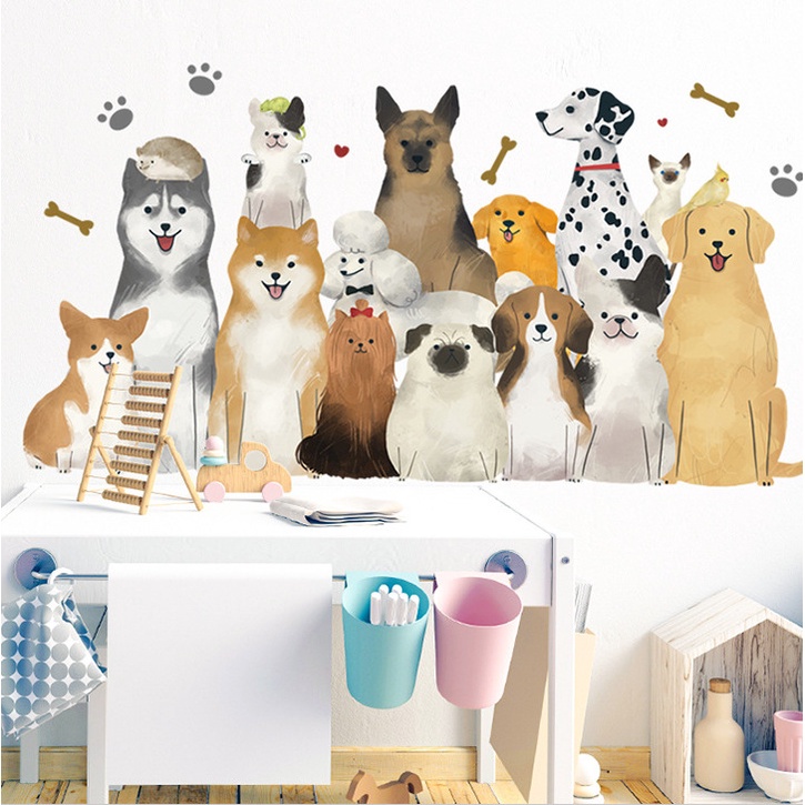 สติ๊กเกอร์หมา ติดผนัง ลายหมา สุนัข เด็ก สติกเกอร์แต่งร้านค้า ร้านกาแฟ วอลเปเปอร์ sticker M07101