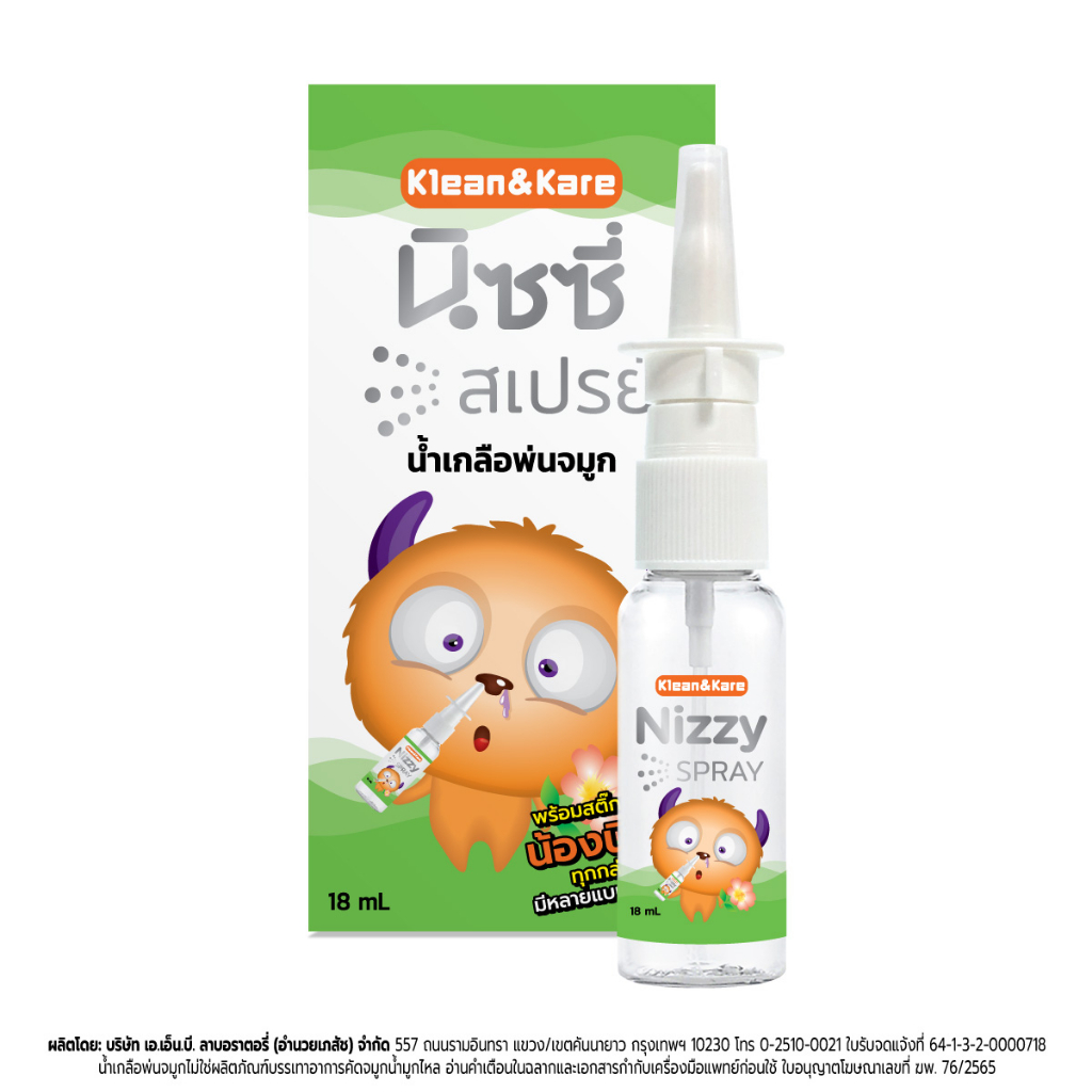 Klean&Kare Nizzy Spray สเปรย์น้ำเกลือพ่นจมูก 18 ml สำหรับล้างจมูก ลดอาการคัดจมูก พกพาสะดวก ใช้ง่าย