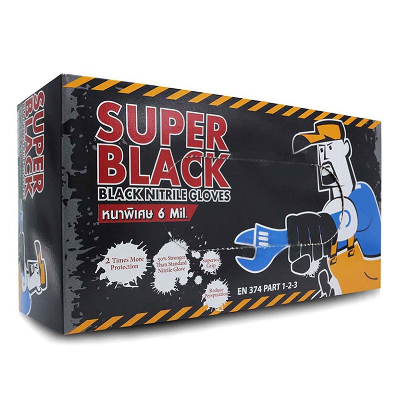 Super Black(100 ชิ้น/กล่อง)ถุงมือยางไนไตรสีดำ หนา 6 mil. | หนาพิเศษ | สัมผัสน้ำมัน | ทำอาหาร