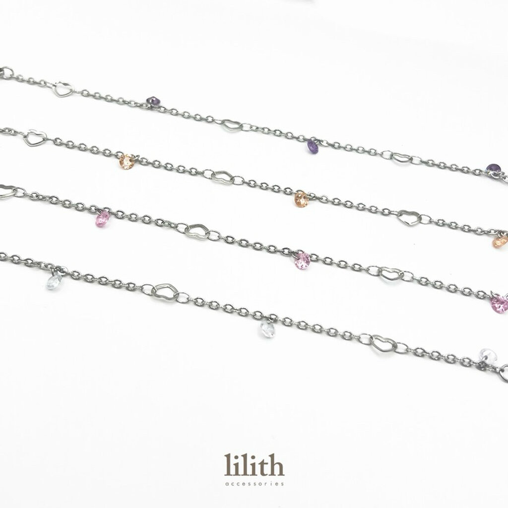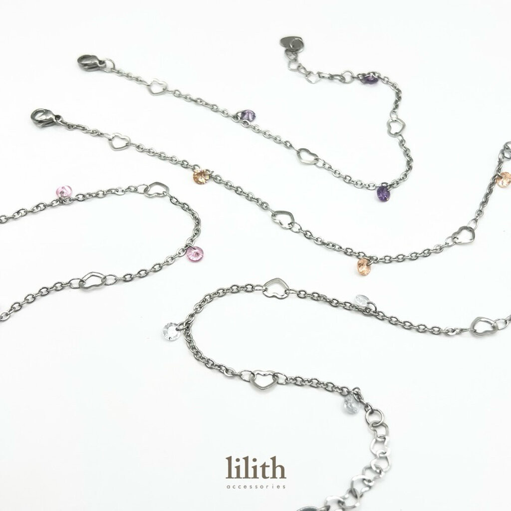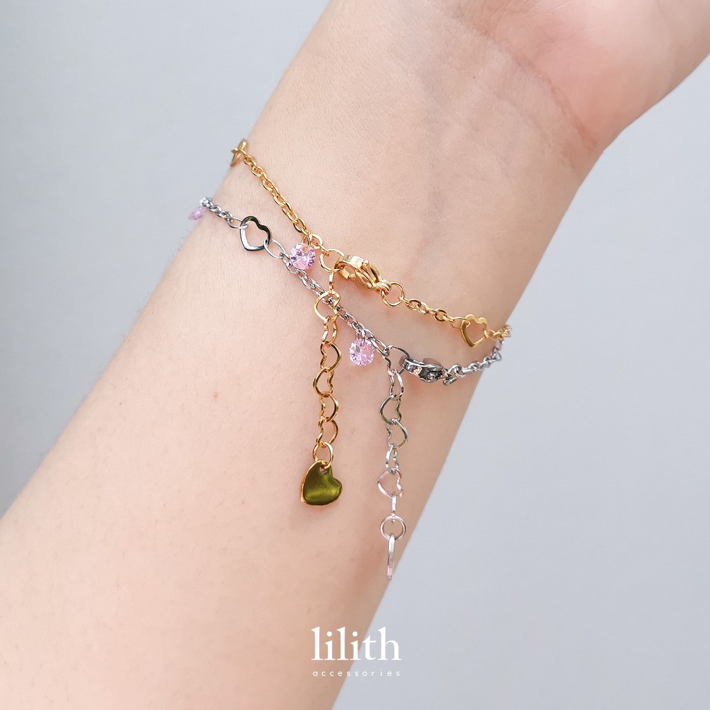 Lilith - tiny heart crystal beads bracelet สร้อยข้อมือ สแตนเลส มินิมอล หัวใจ สีทอง สีเงิน