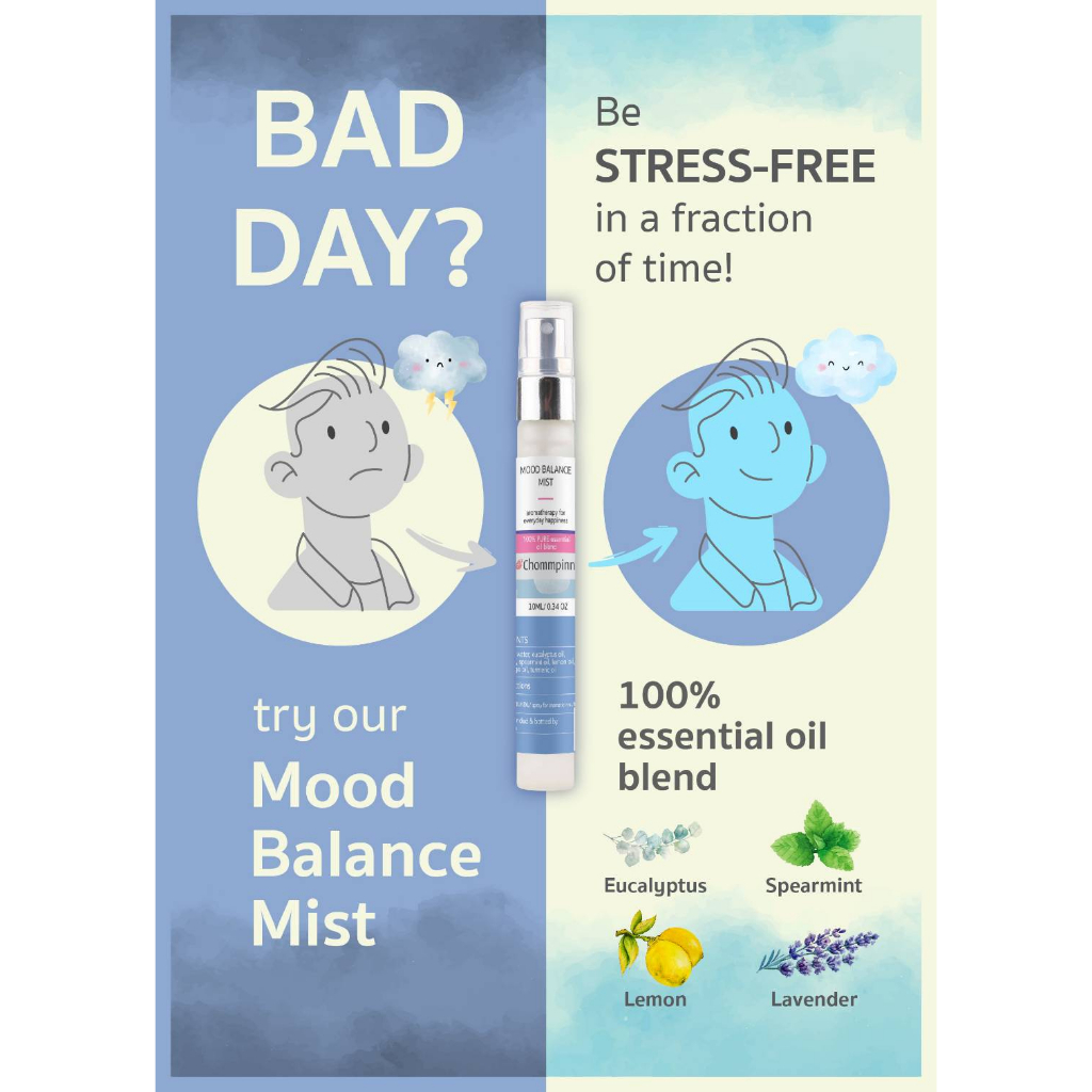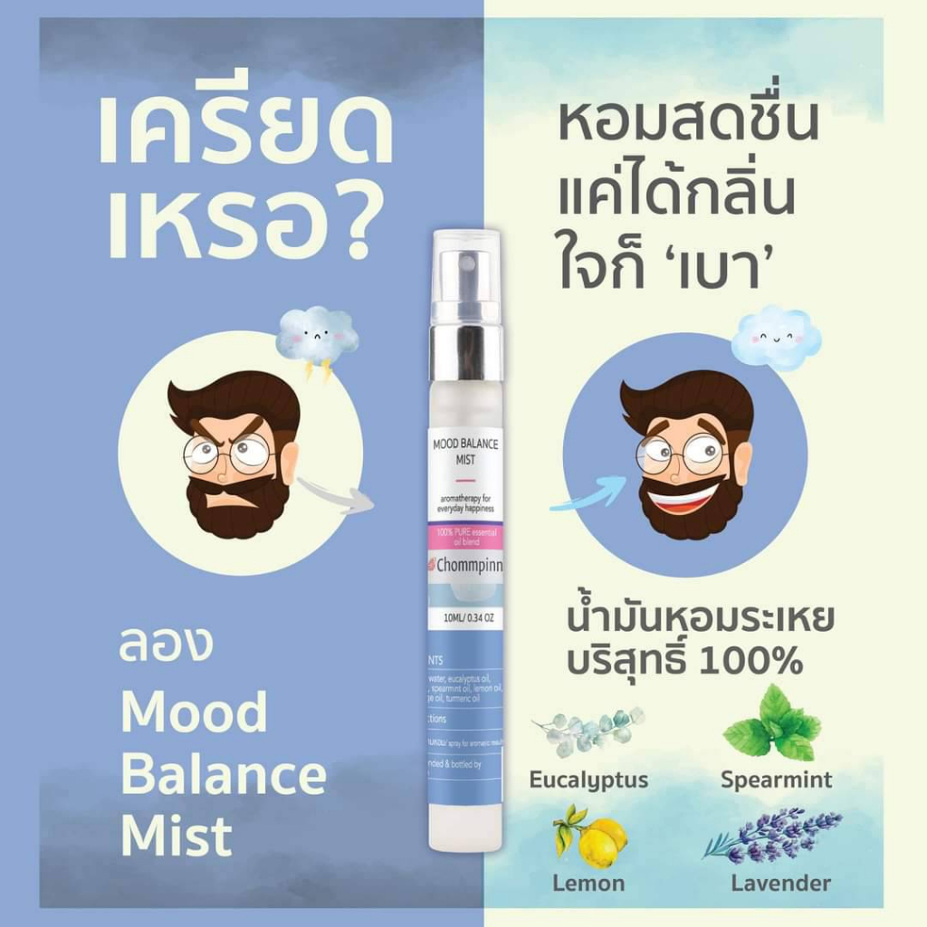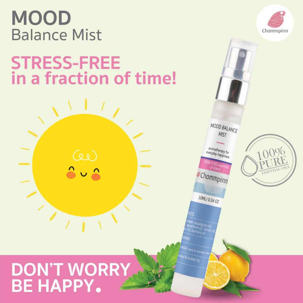 Chompinn Chommpinn เสปรย์น้ำมันหอมระเหยบริสุทธิ์กลิ่นหอมสดชื่นคลายอารมณ์ขุ่นมัว Mood Balance Mist (10 ml)