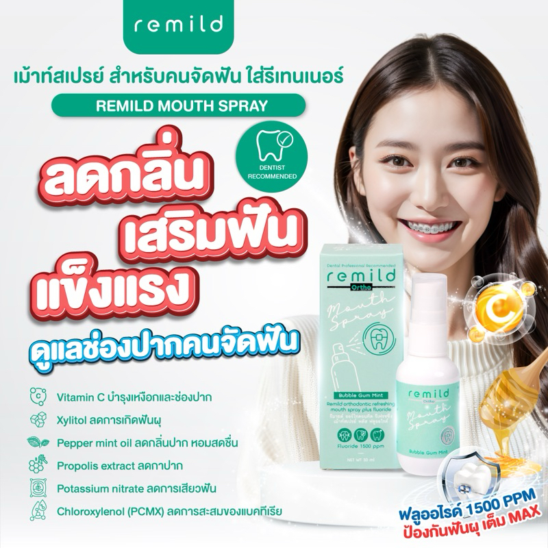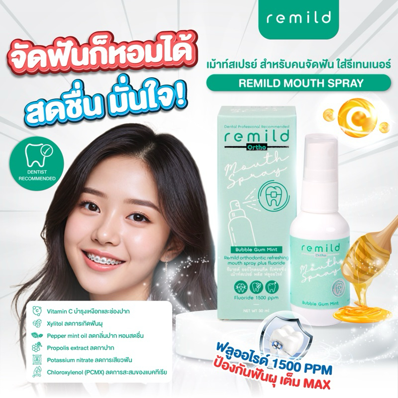 ฟลูออไรด์เม้าท์สเปรย์ Remild mouth spray สเปรย์ระงับกลิ่นปาก คนจัดฟัน ใส่รีเทนเนอร์ และคนไม่จัดฟันใช้ดี ป้องกันฟันผุ