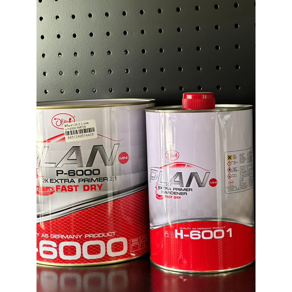 สีพื้นรถยนต์/สีพื้นกลบรอย Plan P-6000 แพลน 2:1 2K สีเทา พร้อมตัวเร่ง ขนาด 3 ลิตร