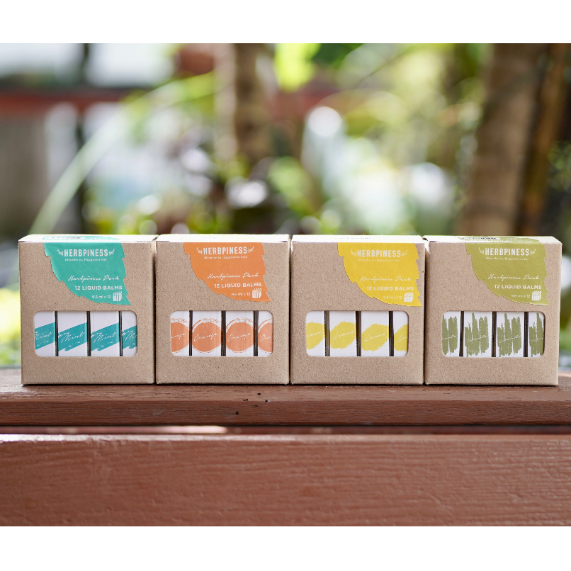 ยาหม่องน้ำ Herbpiness Liquid balm 9.6 ml : MINT | ORANGE | LEMON | CITRONELLA : Pack 12