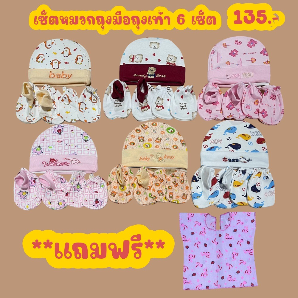 6เซ็ต เซ็ตหมวกถุงมือถุงเท้า **มีของแถม คละสีคละลายตามเพศ