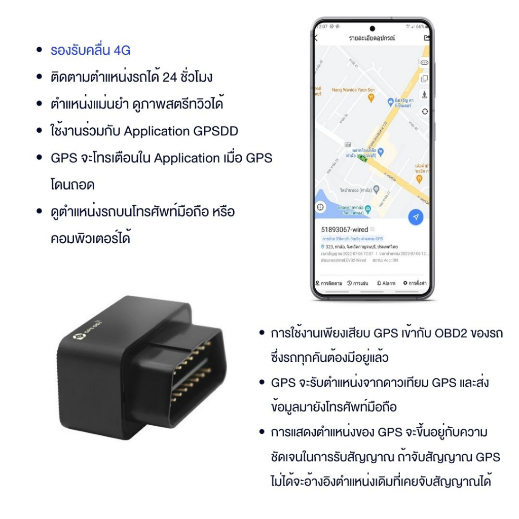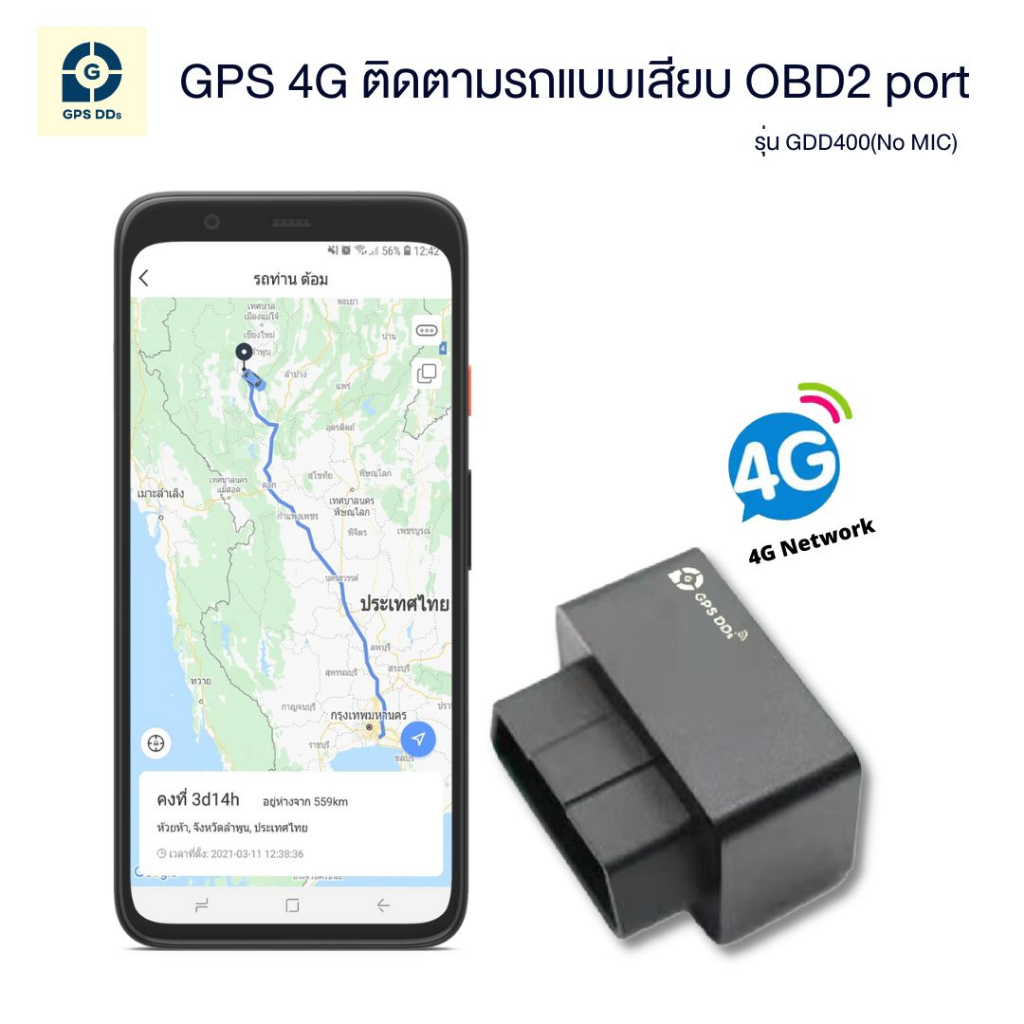 GPSDD GPS ติดตามรุ่น GDD400 แบบเสียบ OBD2 port รับคลื่น 4G ตามแบบเรียลทาม ดูตำแหน่งผ่าน app GPSDD