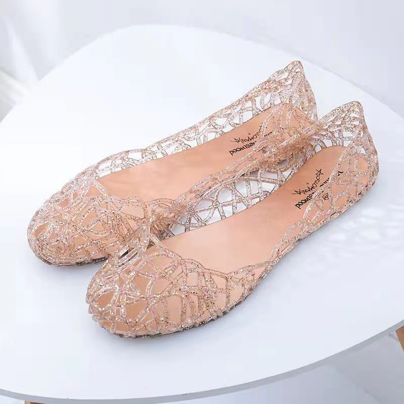 รองเท้าแฟชั่นกากเพชร ส้นแบน หุ่มส้น ยางนิ่มใส่สบาย 201S