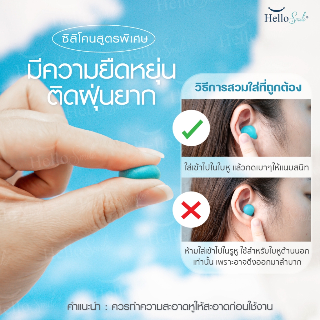 HelloSmile Silicone earplugs ซิลิโคนอุดหู ที่อุดหู พรีเมี่ยม กันเสียง กันน้ำ ลดเสียงรบกวน