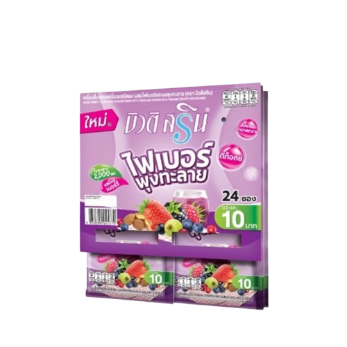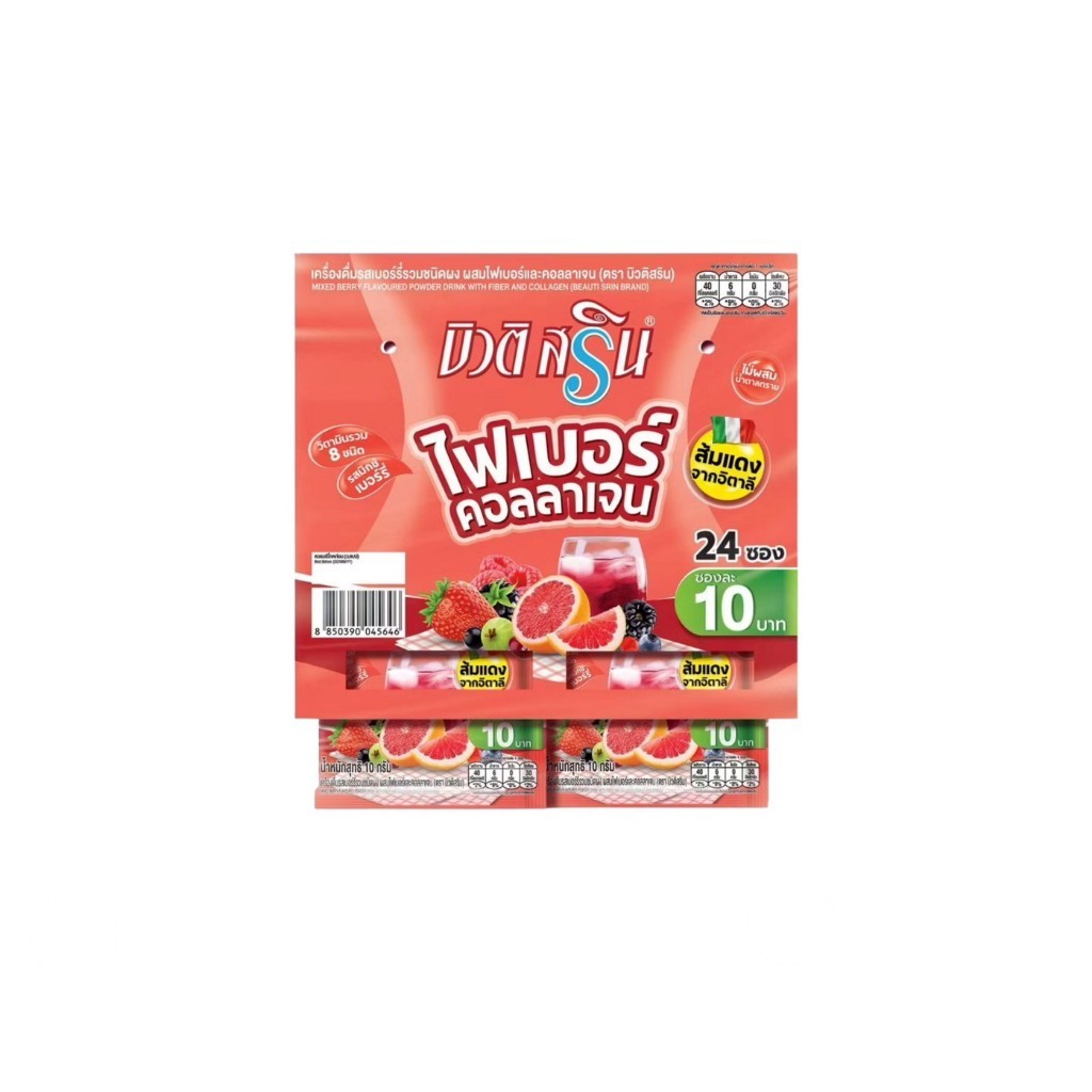 (แผง 24 ซอง) บิวติ สริน ไฟเบอร์ ชนิดผงรสเบอรี่รวมและคอลลาเจน ขนาด 10 กรัม