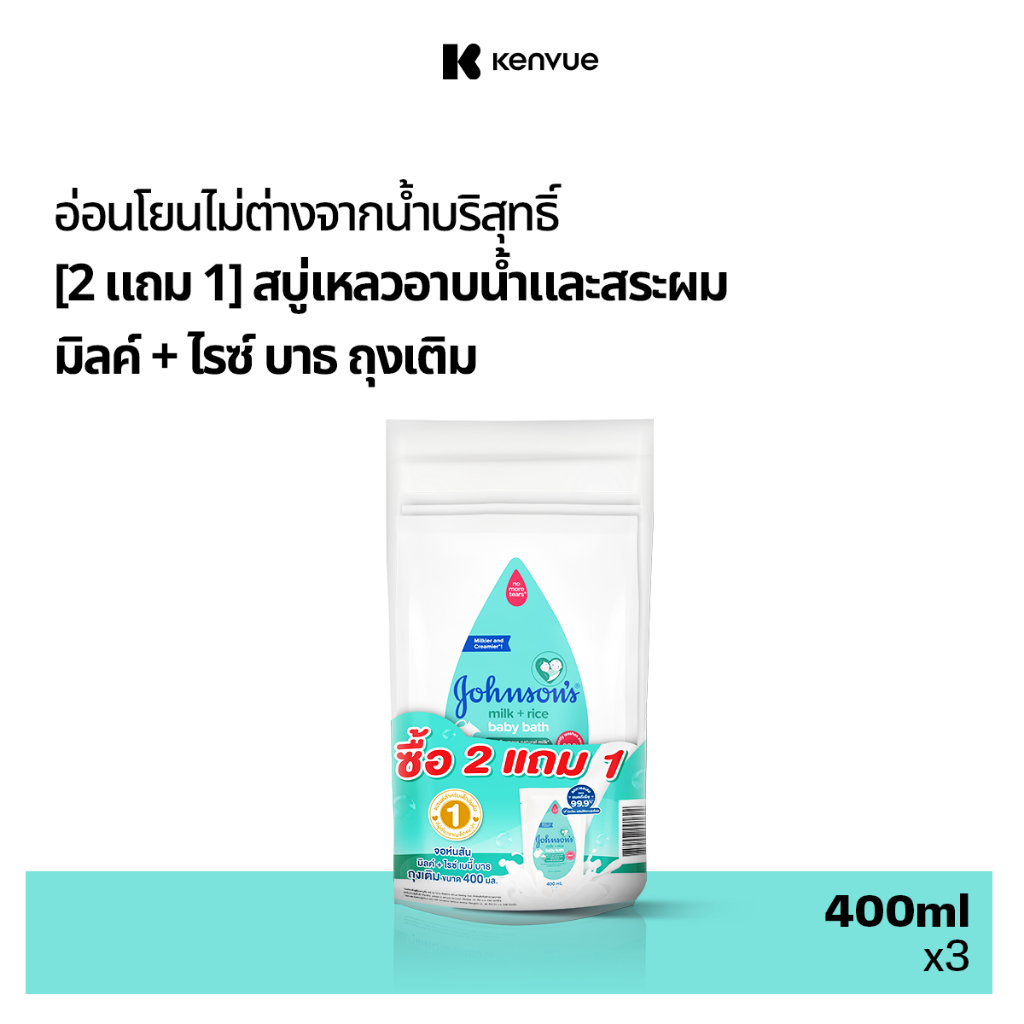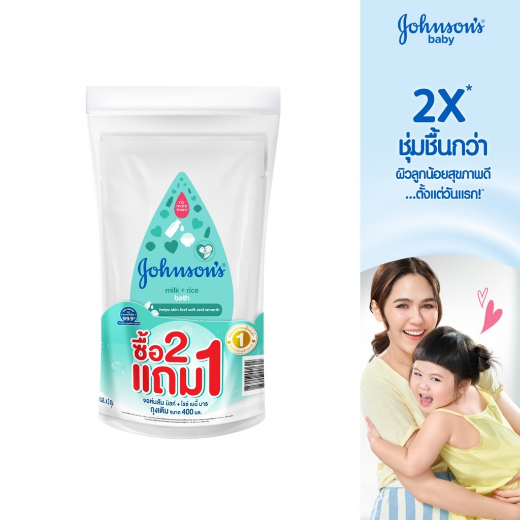 Johnson's จอห์นสัน เบบี้ ครีมอาบน้ำ มิลค์ + ไรซ์ บาธ ถุงเติม 400 มล. (Buy 2 get 1 Free)
