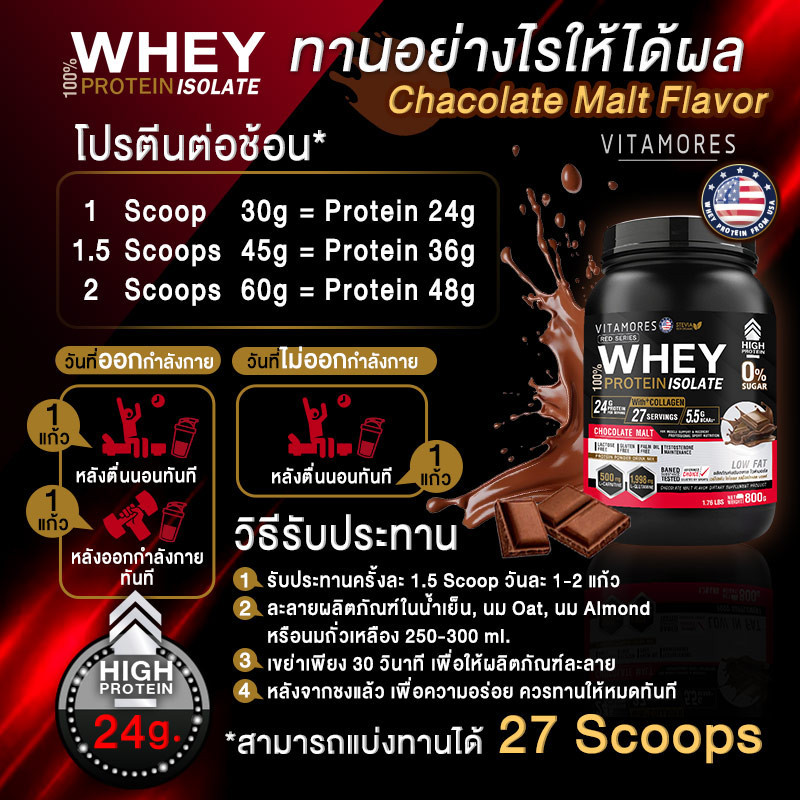 🔥ส่งฟรี🚚(ซื้อคู่=1600) ไวต้ามอร์ส เวย์โปรตีน ไอโซเลต 800 กรัม รสช็อกโกแลต มอลล์ โปรตีนเกรดพรีเมี่ยมนำเข้าคุณภาพสูง